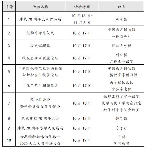 佳期渐近,盛典将启。自即日起,学校正式拉开70周年校庆系列活动的序幕,将充分发挥两校区协同办学优势,联动各地校友会,共同组织系列精彩纷呈的校庆活动,营造热烈浓厚的校庆氛围,以高昂姿态和饱满热情迎接校庆日的到来。我们再次诚挚邀约四海校友、八方宾朋重返曲园,共忆芳华、共叙情谊、共谋发展、共襄盛举!