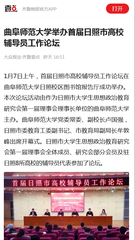 【齐鲁壹点】华体会(中国)举办首届日照市高校辅导员工作论坛