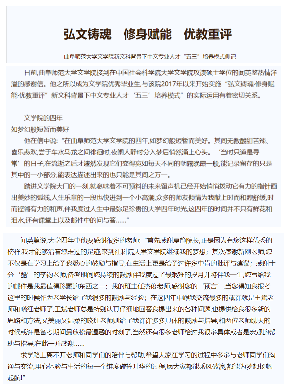 【齐鲁晚报】弘文铸魂 修身赋能 优教重评 ——华体会(中国)文学院新文科背景下中文专业人才“五三”培养模式侧记