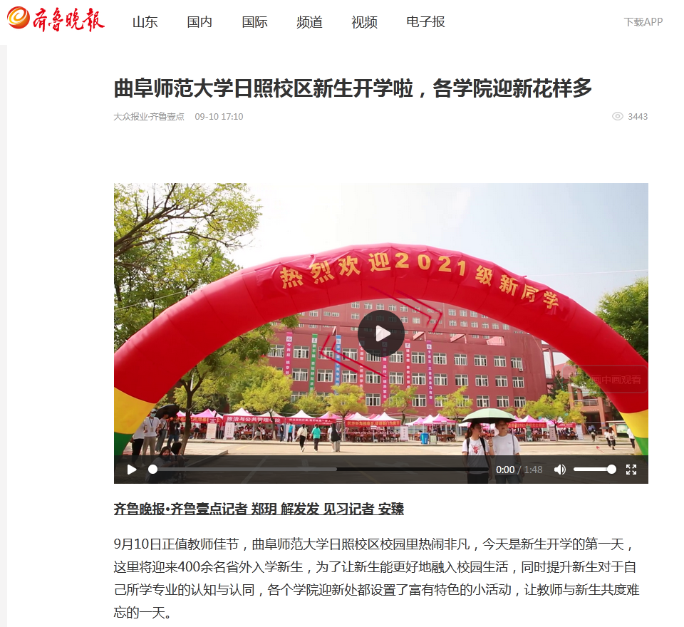 齐鲁晚报:华体会(中国)新生开学,各学院迎新花样多