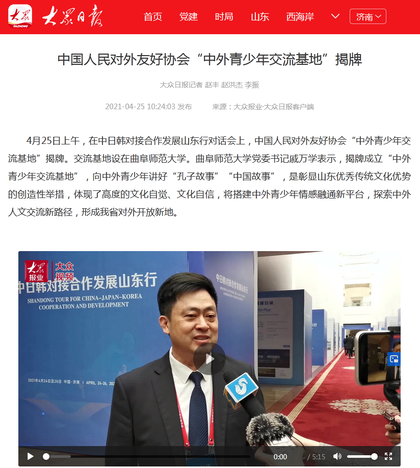 大众日报:中国人民对外友好协会“中外青少年交流基地”挂牌曲阜师大
