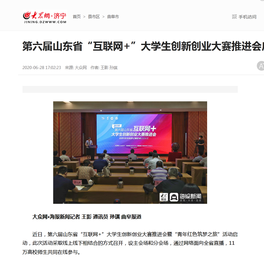 大众网:第六届山东省“互联网+”大学生创新创业大赛推进会启动