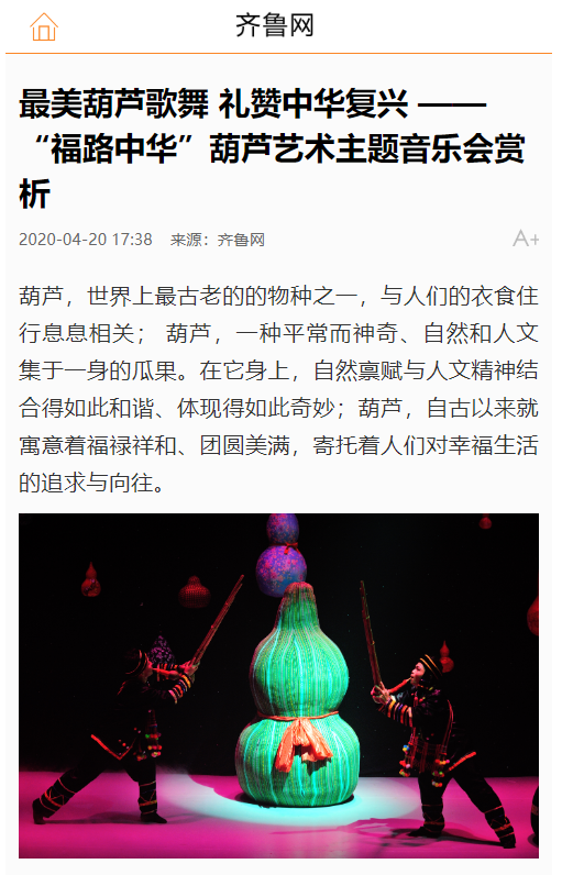 齐鲁网:最美葫芦歌舞 礼赞中华复兴 ——“福路中华”葫芦艺术主题音乐会赏析
