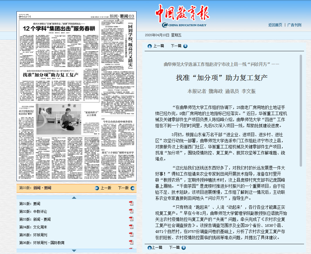 《中国教育报》报道链接 http://paper.jyb.cn/zgjyb/html/2020-04/10/content_578314.htm?div=-1