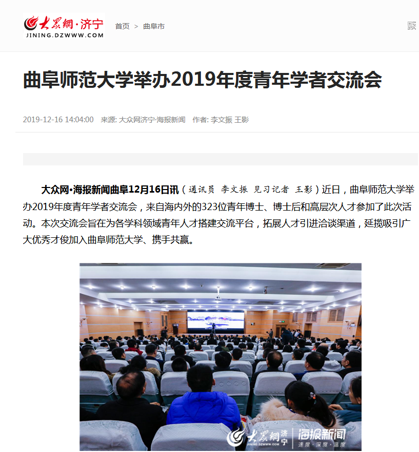大众网:华体会(中国)举办2019年度青年学者交流会