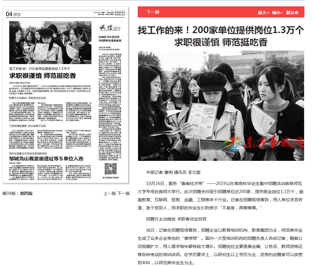 济宁晚报:200家单位提供岗位1.3万个 求职很谨慎 师范挺吃香