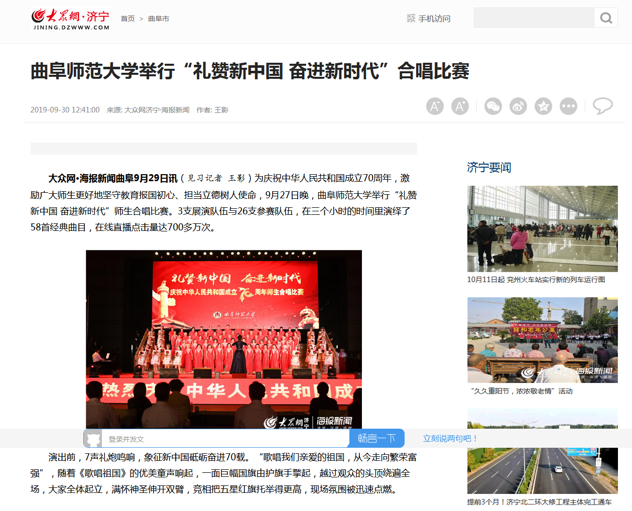 大众网报道链接:http://jining.dzwww.com/xsq/qfs/201909/t20190930_17118239.htm?from=singlemessage&isappinstalled=0