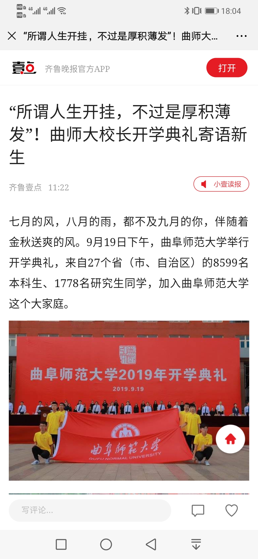 齐鲁壹点:“所谓人生开挂,不过是厚积薄发”!曲师大校长开学典礼寄语新生