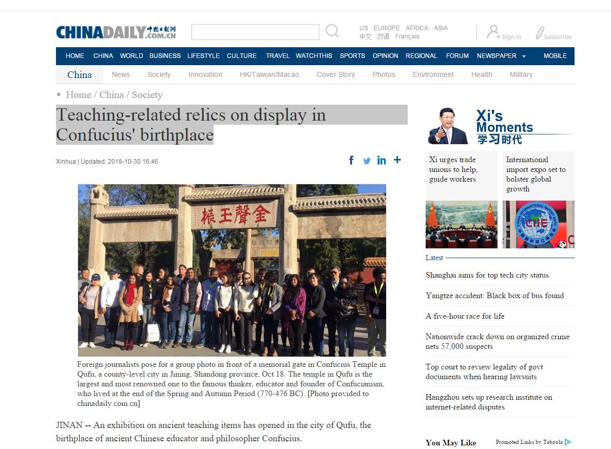 中国日报报道链接:http://www.chinadaily.com.cn/a/201810/30/WS5bd81a53a310eff3032857fc.html