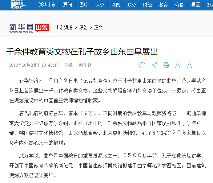 新华社报道链接:http://www.sd.xinhuanet.com/xhsksd/2018-10/29/c_1123629997.htm