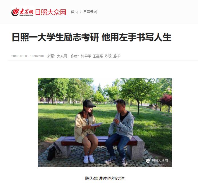 大众网报道链接:http://rizhao.dzwww.com/rzxw/201806/t20180608_16523894.html