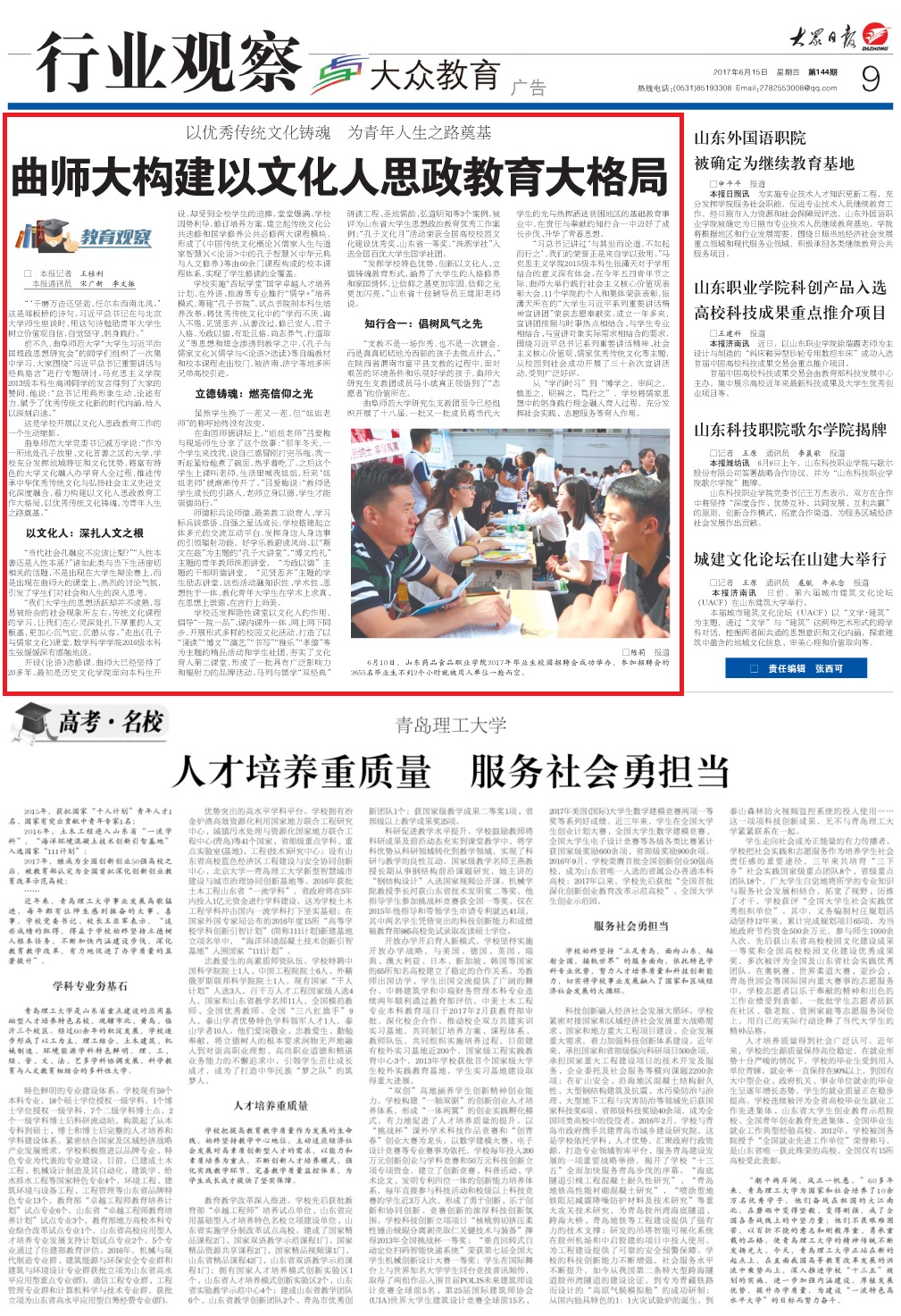《大众日报》报道链接:http://paper.dzwww.com/dzrb/content/20170615/Page09NU.htm