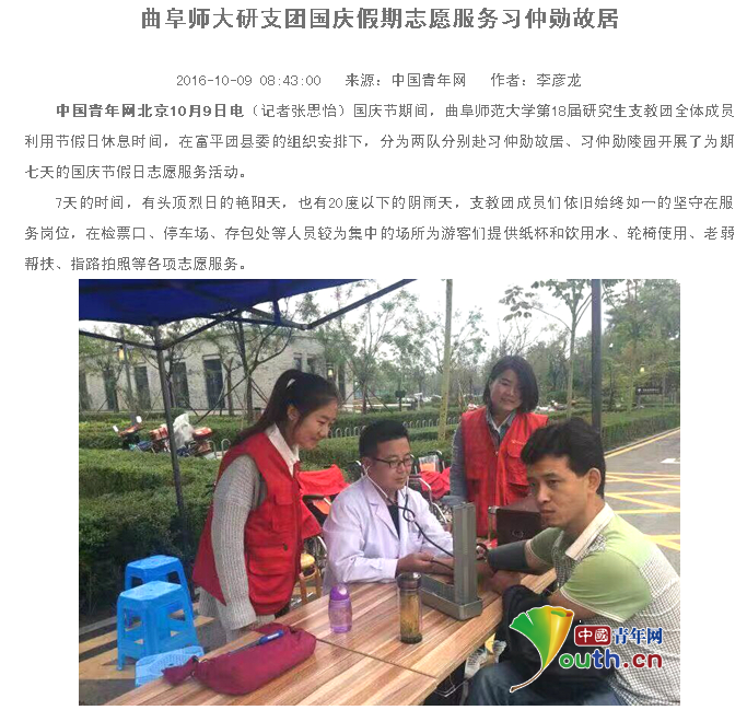 中国青年网:曲阜师大研支团国庆假期志愿服务习仲勋故居