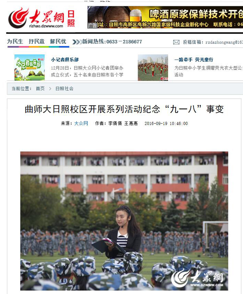 大众网报道链接:http://rizhao.dzwww.com/rzsh/201609/t20160919_14923751.html