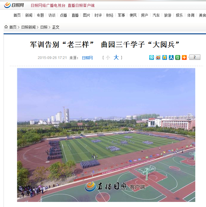 日照网:军训告别“老三样” 曲园三千学子“大阅兵”