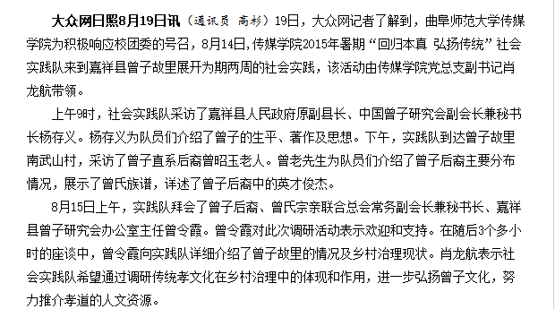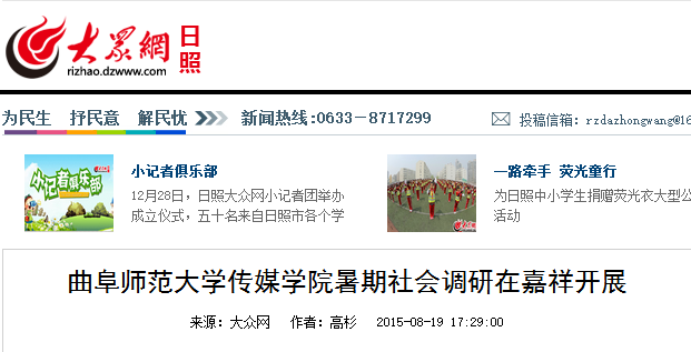 大众网:华体会(中国)传媒学院暑期社会调研在嘉祥开展