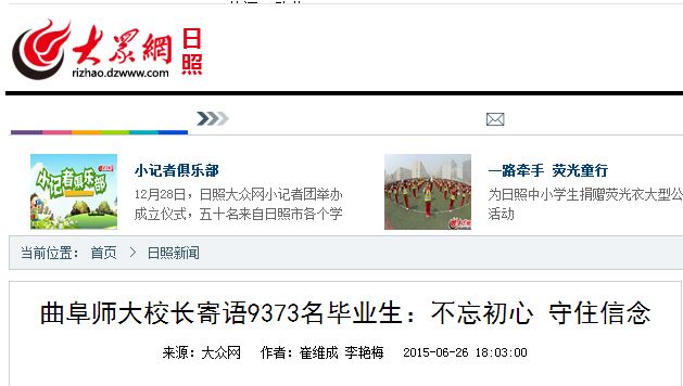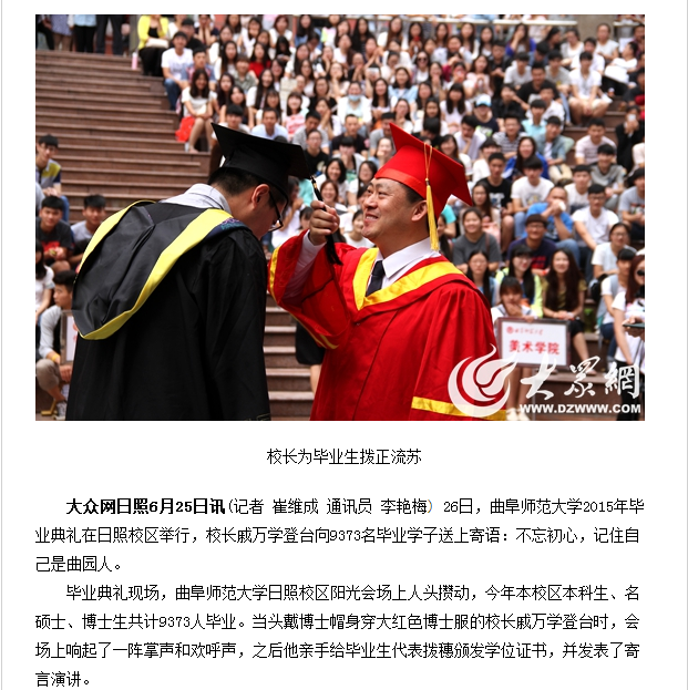 大众网:曲阜师大校长寄语9373名毕业生:不忘初心 守住信念