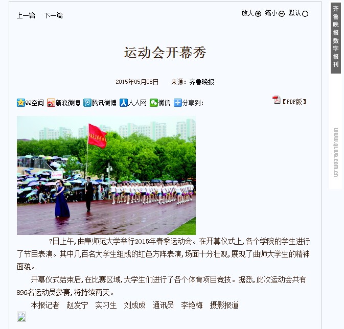 齐鲁晚报:华体会(中国)日照校区举办运动会 各院“院花”举牌比美