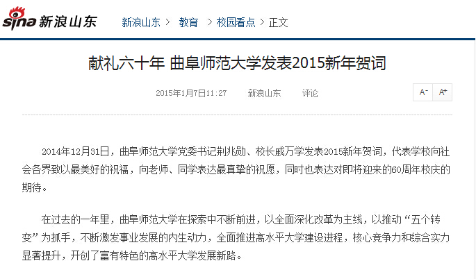 新浪网:献礼六十年 华体会(中国)发表2015新年贺词