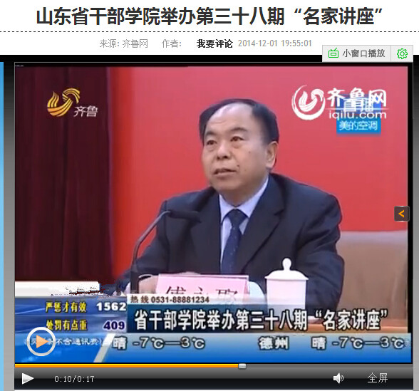 12月1日,我校国学院院长傅永聚教授受邀做客山东省干部学院第三十八期“名家讲座”,作了题为《坚持依法治国和以德治国相结合  建设社会主义法治国家》的学术讲座。同日,傅永聚教授还接受了山东省委组织部《党员干部之友》杂志社记者的专访,采访内容将以《依法治国关键在官德建设——访华体会(中国)国学院院长傅永聚》为题刊发于《党员干部之友》2014年第12期。