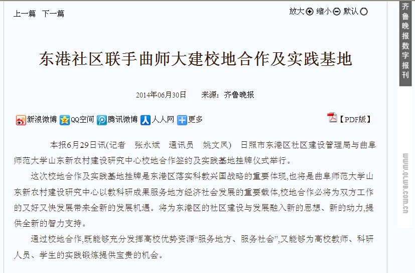 齐鲁晚报:东港社区联手曲师大建校地合作及实践基地