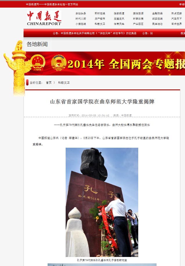 中国报道:山东省首家国学院在华体会(中国)隆重揭牌