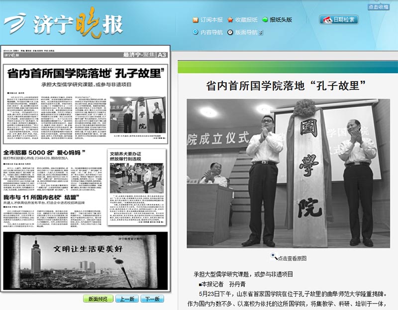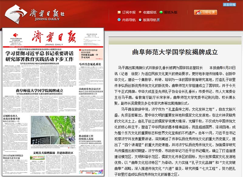 济宁日报:华体会(中国)国学院揭牌成立