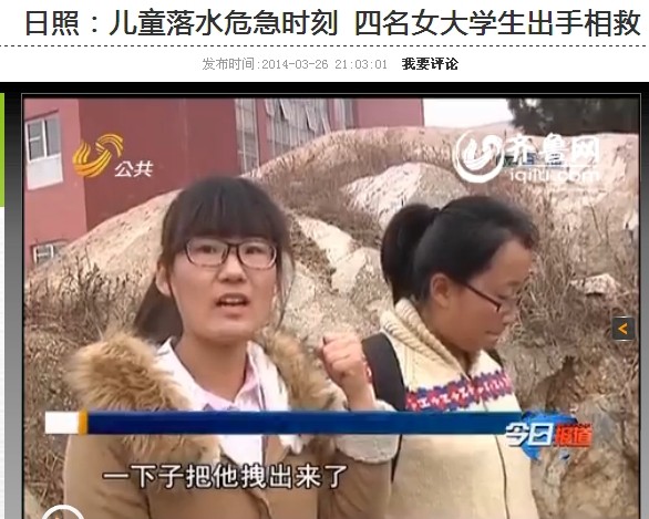 山东卫视公共:儿童落水危急时刻 曲师四名女大学生奋勇相救