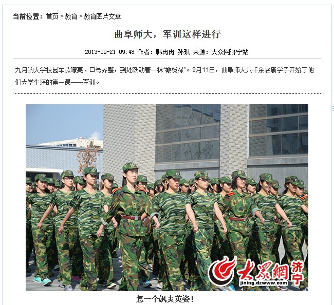 大众网:曲阜师大,军训这样进行