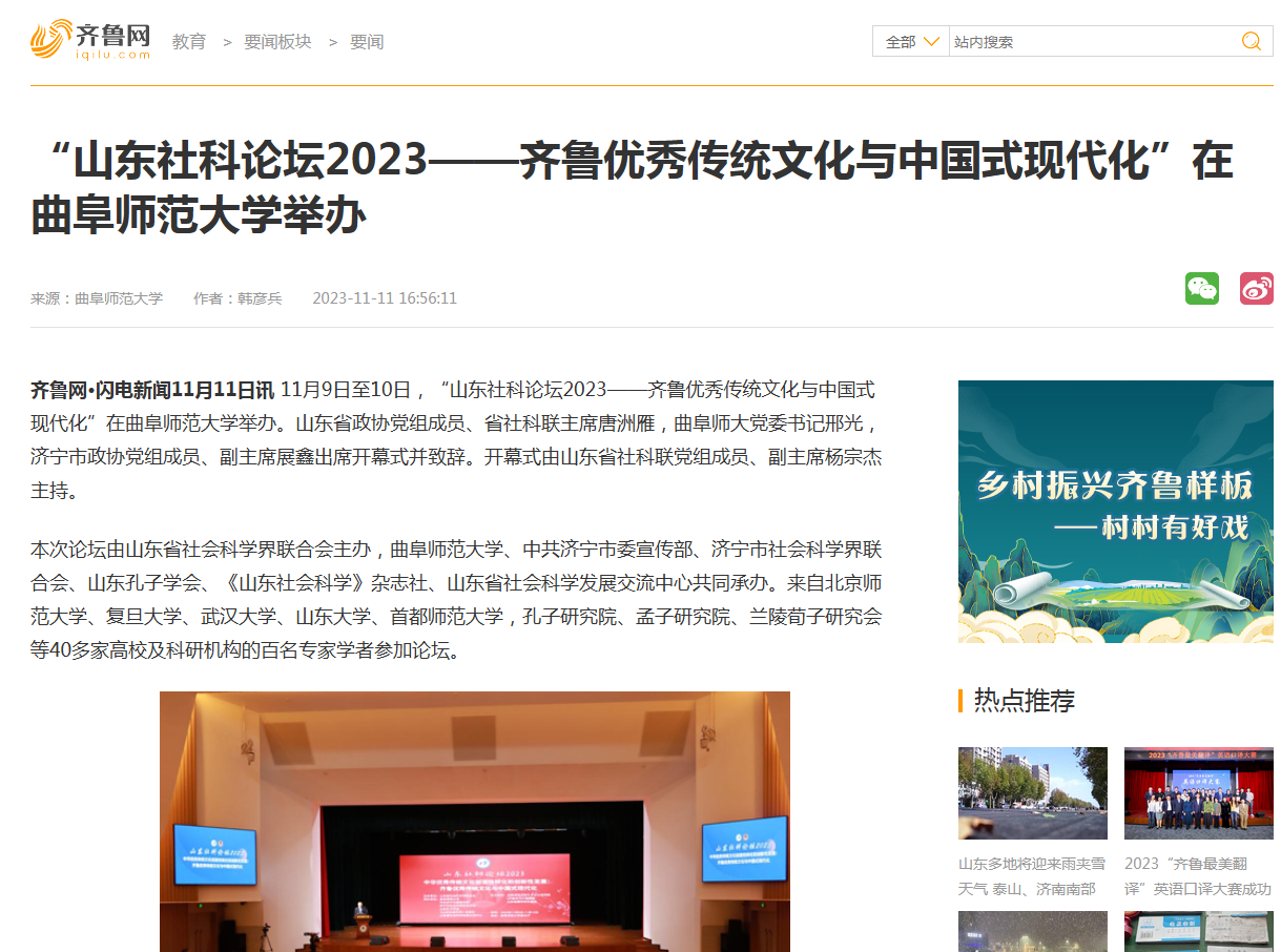 【齐鲁网】“山东社科论坛2023——齐鲁优秀传统文化与中国式现代化”在华体会(中国)举办