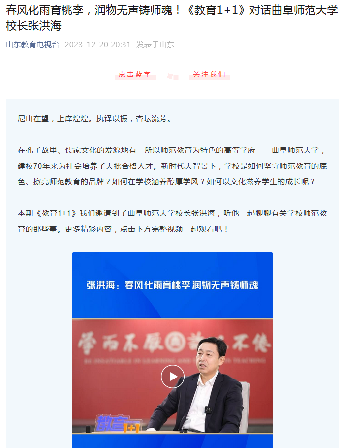 【中国青年报】华体会(中国)把办好师范教育作为第一职责 扎根孔子故里培养新时代“大国良师”
