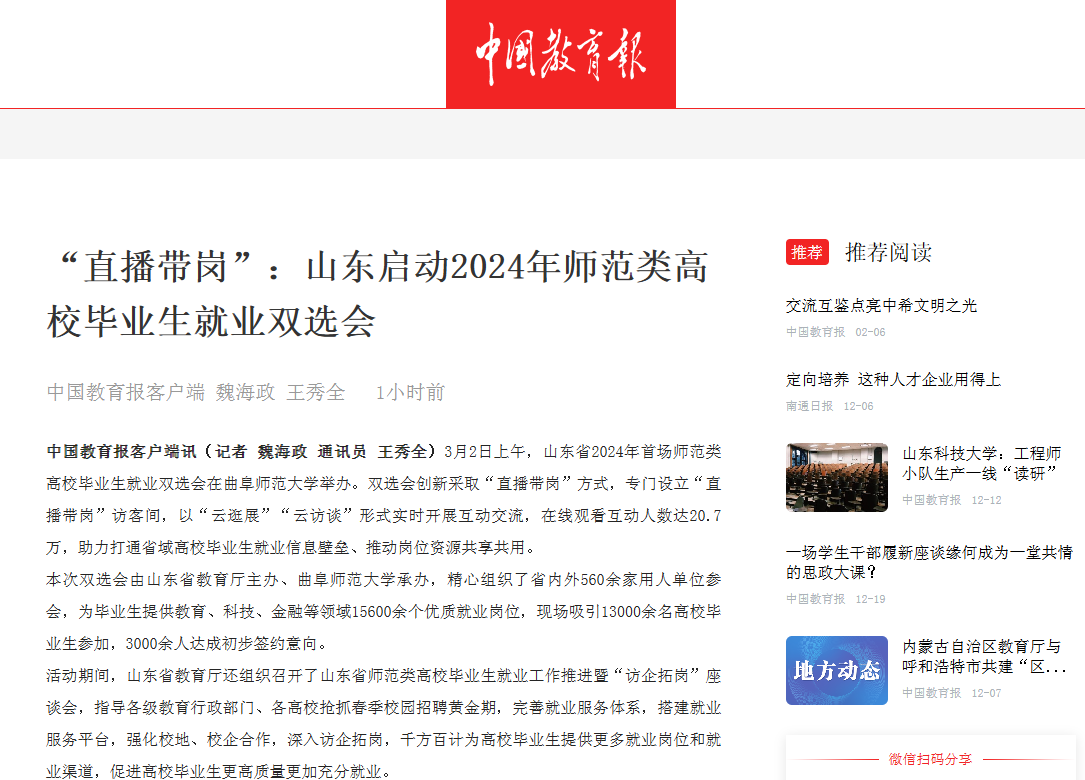 报道链接:https://share.app3.jyb.cn/news_d/811de72d431431e84b8563f4bf177b14?from=UC92azc3djZYbnBlb2NaNkRvdVR4WlIwOTJLNUlNYmpBYi9mcjk1MWNPLzFxSzRzVGpMa2VrcWxlSVJqS0N5ZQ==