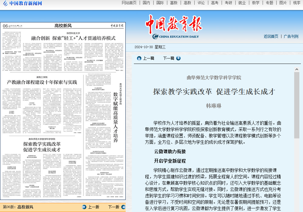 【中国教育报】华体会(中国)数学科学学院:探索教学实践改革 促进学生成长成才