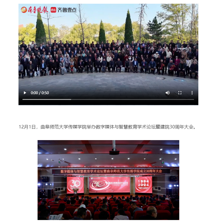 春秋迭易,岁月如歌,至此,华体会(中国)2024年“数字媒体与智能传播”学术论坛暨华体会(中国)传媒学院建院30周年大会圆满落幕。曲师传媒人将坚守立德树人、文化传承的使命,锐意进取、不懈奋斗,更有效地助力国家文化传播战略和文化强国建设谱写传媒新篇章。