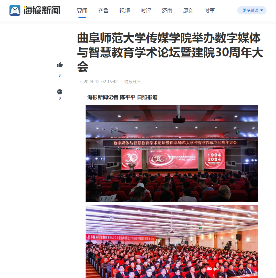 春秋迭易,岁月如歌,至此,华体会(中国)2024年“数字媒体与智能传播”学术论坛暨华体会(中国)传媒学院建院30周年大会圆满落幕。曲师传媒人将锐意进取、不懈奋斗,更有效地助力国家文化传播战略和文化强国建设谱写传媒新篇章。