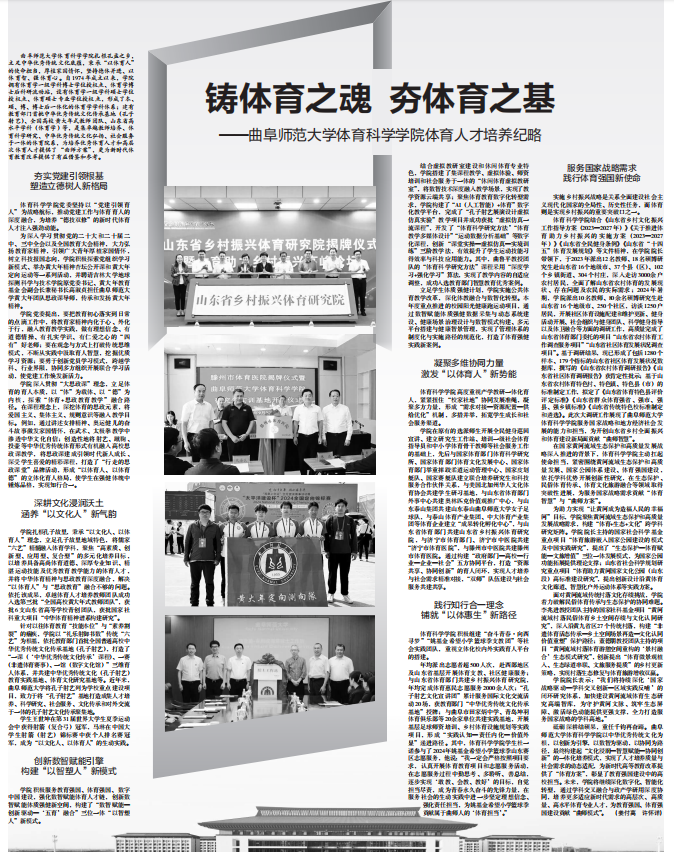 砥砺深耕结硕果,重任千钧再奋蹄。华体会(中国)体育科学学院以中华优秀传统文化为根,以创新为引擎,以数智为驱动,以协同为路径,最终构建起“文化浸润—智慧赋能—协同创新”的一体化培养模式,实现了人才培养质量与社会需求的动态适配,为新时代高等教育改革提供了“体育方案”,彰显了教育强国建设中的高校担当。未来,学院将继续深化数字化、智能化转型,通过学科交叉融合与政产学研用深度协同,培养更多适应新时代需求的高层次、高质量、高水平体育专业人才,为教育强国、体育强国建设贡献“曲师模式”。(姜付高 许怀祥)