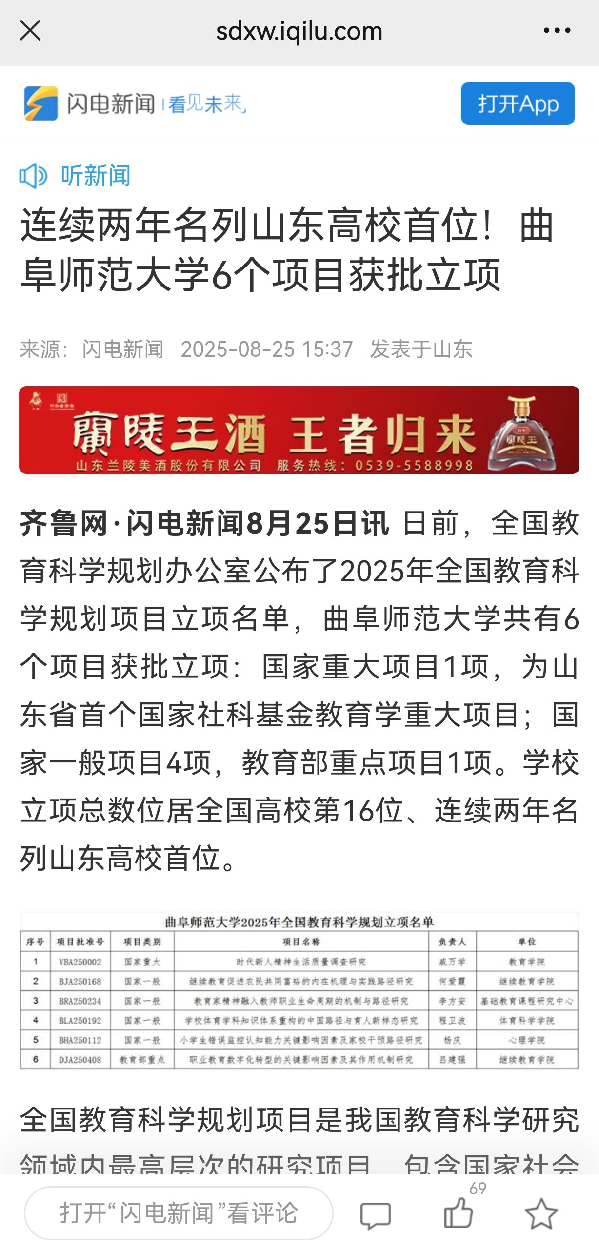【闪电新闻】连续两年名列山东高校首位!华体会(中国)6个项目获批立项