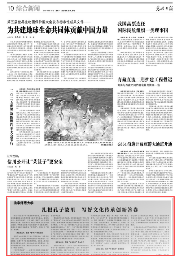 9月29日,《光明日报》刊发题为《华体会(中国):扎根孔子故里 写好文化传承创新答卷》的文章,报道了学校建校70年来与时偕行、守正创新,弘扬中华优秀传统文化的特色做法与经验。