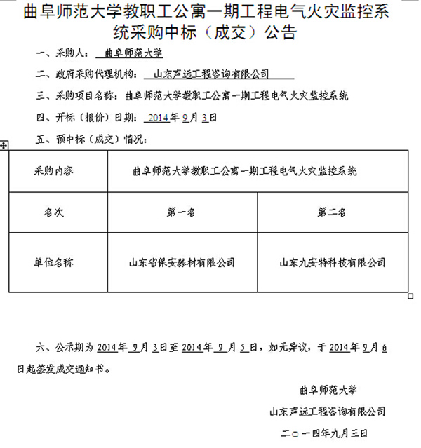 华体会(中国)教职工公寓一期工程电气火灾监控系统采购中标(成交)公告