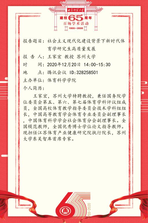建校65周年校庆百场学术活动-苏州大学王家宏教授