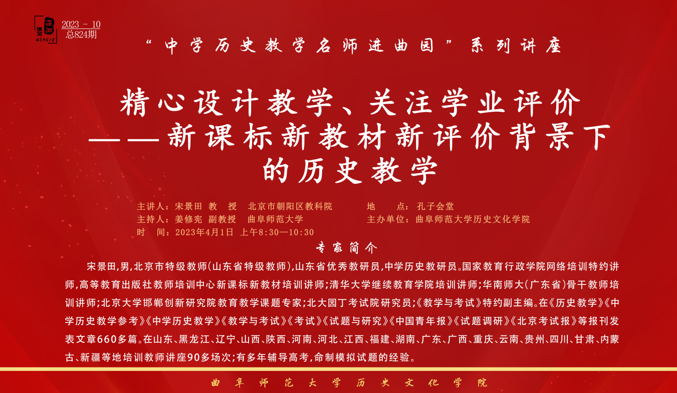 洙泗讲堂预告|宋景田:精心设计教学、关注学业评价——新课标新教材新评价背景下的历史教学