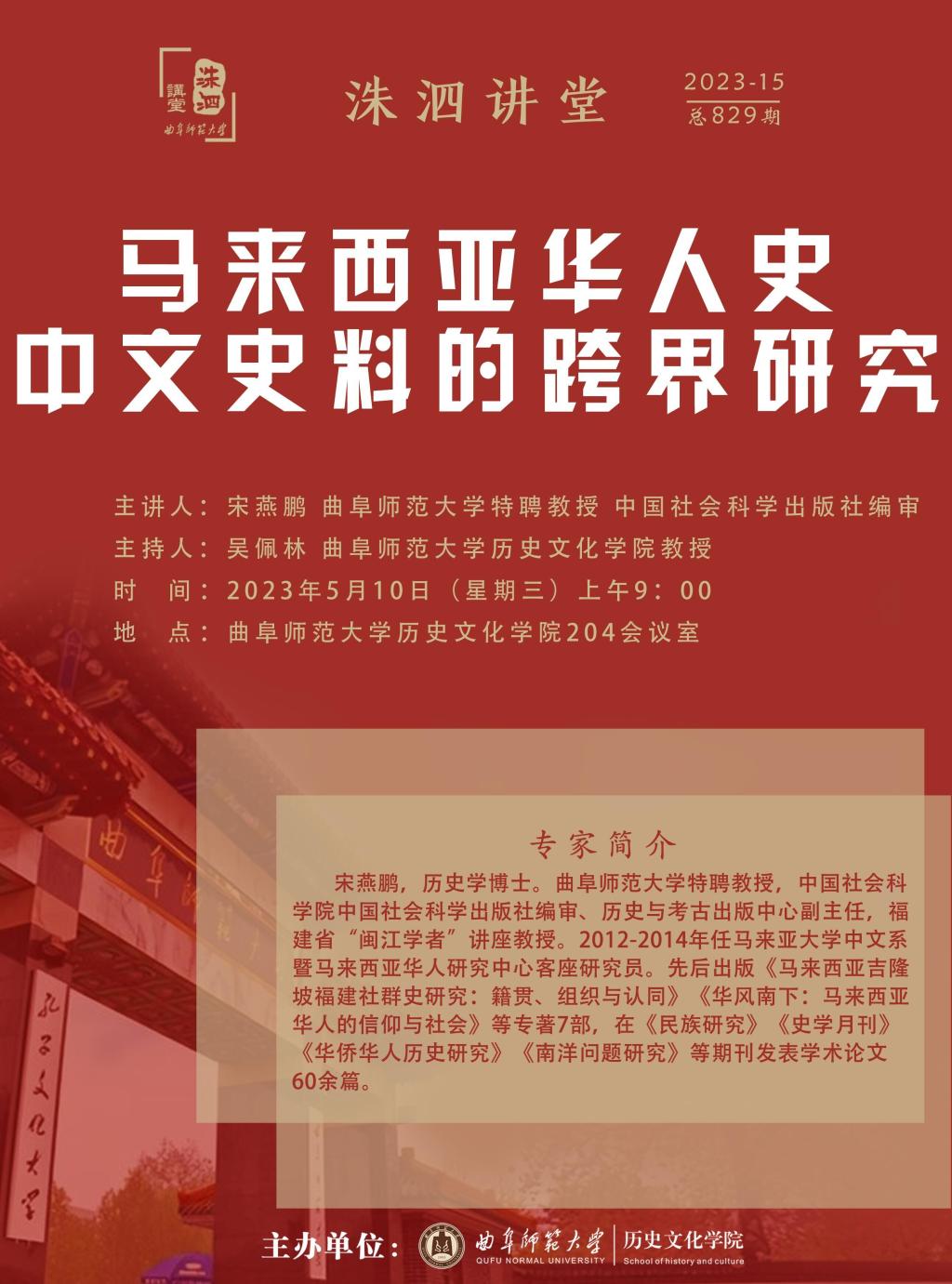 洙泗讲堂预告|宋燕鹏:马来西亚华人史中文史料的跨界研究