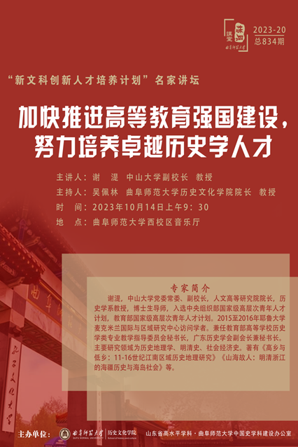 洙泗讲堂预告| 谢湜:加快推进高等教育强国建设,努力培养卓越历史学人才