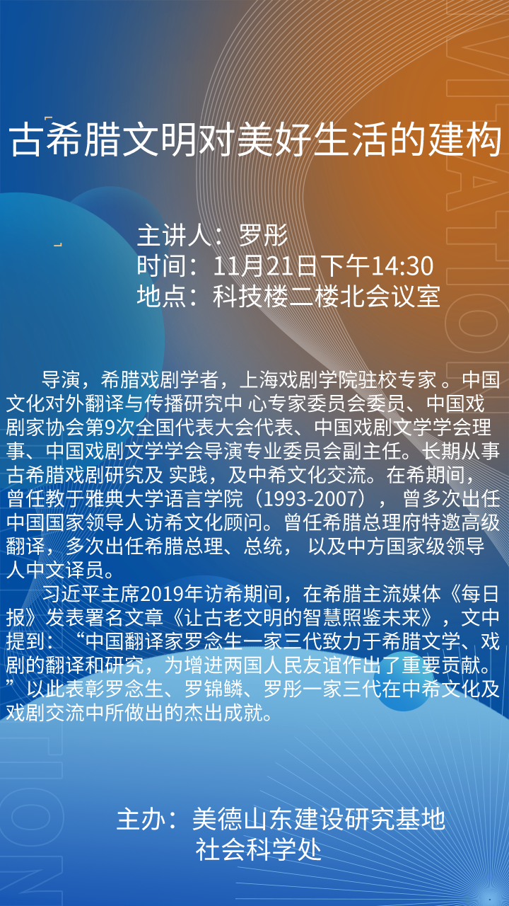 讲座预告| 古希腊文明对美好生活的建构