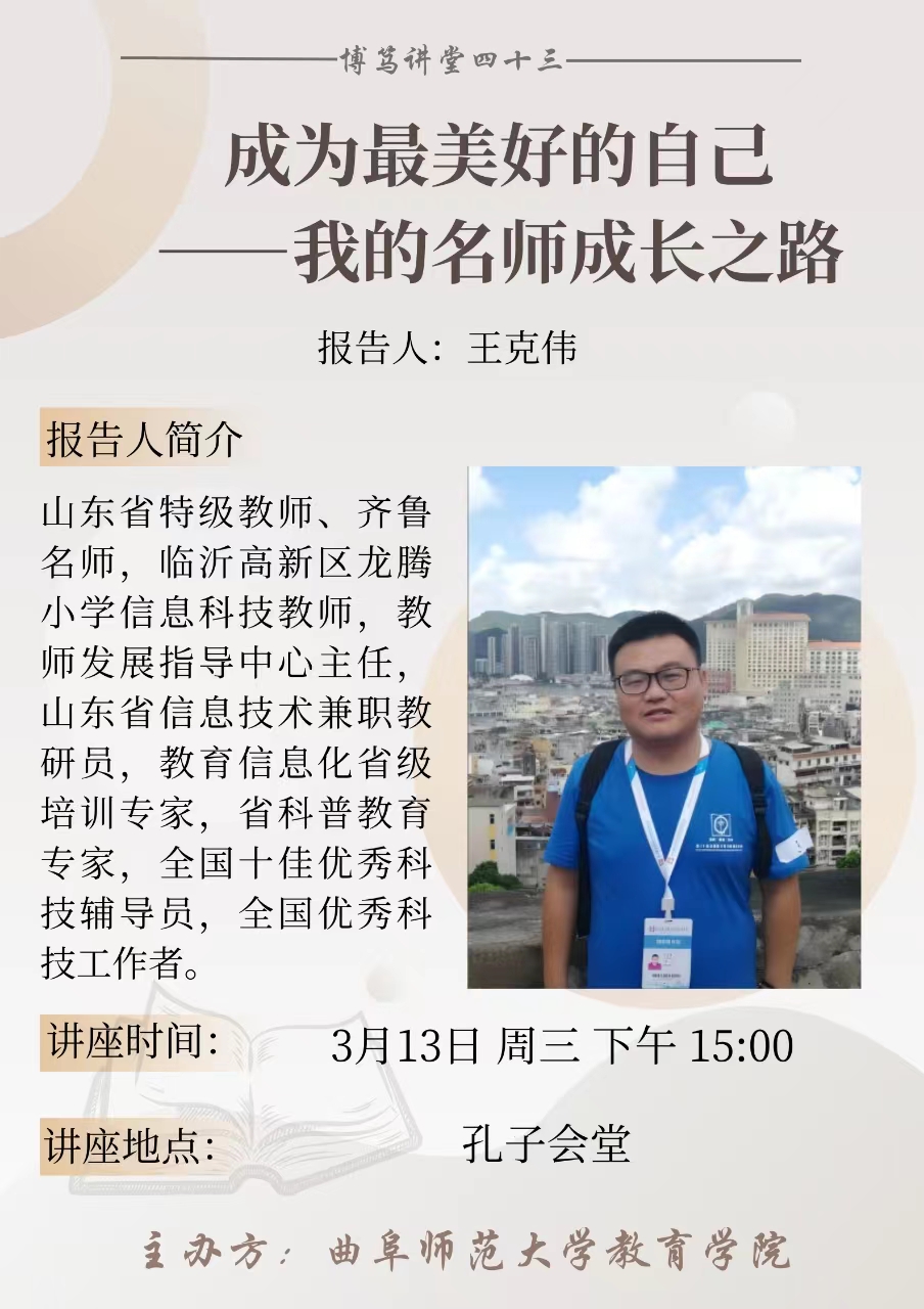 博笃讲堂预告| 王克伟:成为最美好的自己——我的名师成长之路