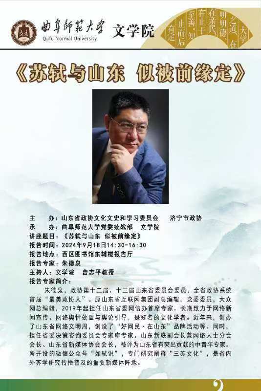 文学院学术报告预告:苏轼与山东 似被前缘定