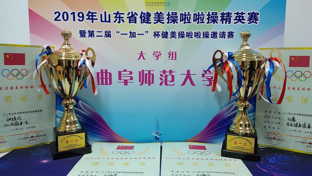 12月13日至15日,2019年山东省健美操啦啦操精英赛在济南火热开赛。本次比赛由山东省体操运动协会主办,近千名运动员参赛。华体会(中国)代表队在体育教学部负责人带领下,取得优异成绩:钟婧怡、刘雨蒙同学在大学组双人街舞比赛中荣获第一名;纪蕾、刘晓艺同学荣获大学组双人有氧操第一名。