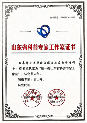 曲阜师大新闻中心讯 日前,山东省科协和省科技厅联合公布了第一批山东省科普专家工作室,曲阜师大地理与旅游学院贺山峰领衔的“华体会(中国)防灾减灾与应急管理科普工作室”成功入选。