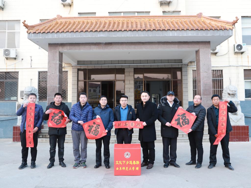 曲阜师大新闻中心讯(通讯员:刘建河)在新春佳节来临之际,离退休工作处开展了文化下乡送春联活动,1月21日,离退休教职工党委书记杨正运、离退休工作处处长石会学、副处长刘建河等将我校老年书法爱好者创作的500余幅春联和福字送到我校第一书记帮包的莒南县坊前镇,为帮扶村群众送去新春祝福,我校第一书记张忠凯、张旭,坊前镇领导和帮包村负责人参加了赠春联仪式。