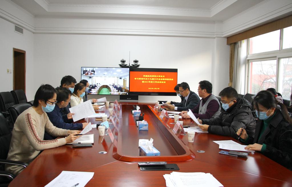 曲阜师大新闻中心讯(通讯员:李宝富)12月27日,民盟华体会(中国)总支部召开座谈会,学习贯彻中共十九届六中全会精神,总结过去的一年,研究部署2022年工作。党委常委、宣传部部长张隆海出席会议并讲话。民盟曲阜师大总支主委张玉忠,日照校区党委书记孔令军、统战部常务副部长王明科参加活动。民盟曲阜师大原支部主委黄广华、张欣铭,总支副主委宋润民、栾世霞、李宝富及部分盟员参加会议。李宝富主持会议。